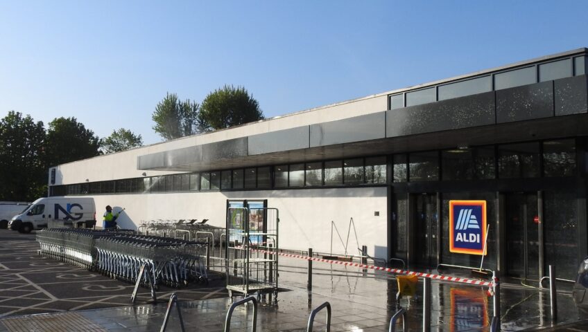 SkyLine SoftWash were recently asked to clean the Cladding & Windows at Aldi in Stroud & Cirencester