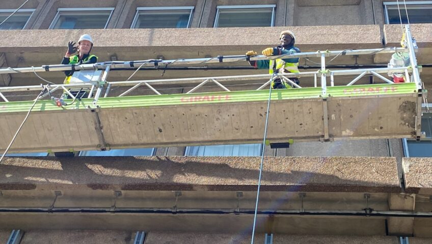 Work was then finally underway . If you have a large building clean to manage and just don’t know where to start then get in touch with SkyLine SoftWash one of the team will be happy to assist.